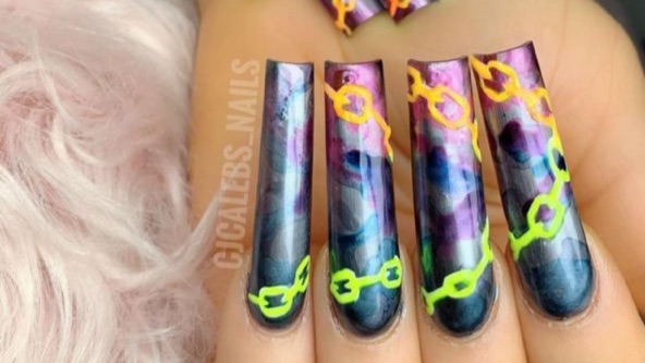 Extra long nails with design