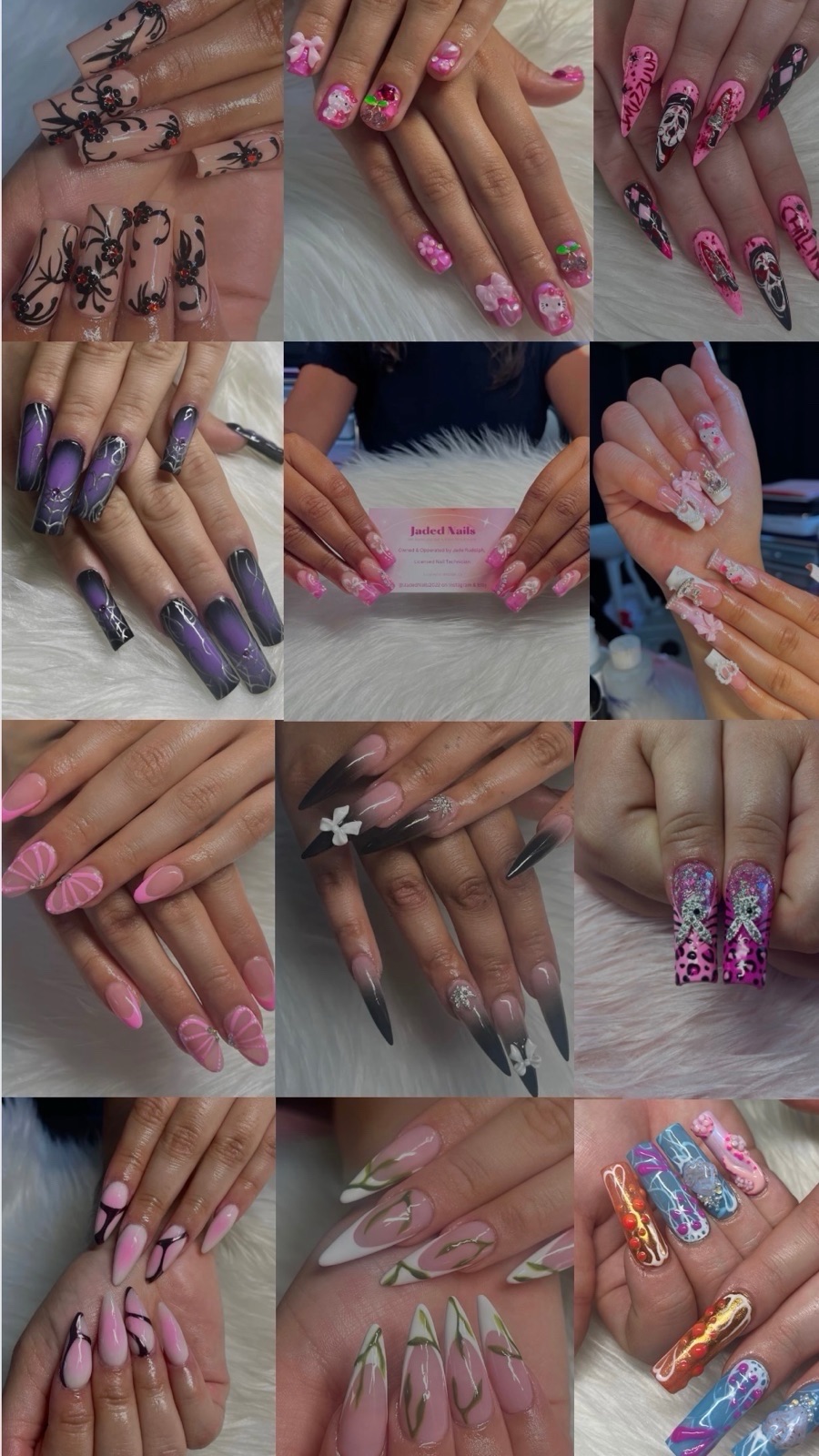 “Jaded nails IS THE BEST!! She is literally the sweetest & so chill! She’s so talented I always come out loving my nails. I’m a girl with social anxiety but she makes me feel so comfortable & even gives an option to watch TV. Her room is so pink & peaceful. Truly recommend <3 (this is my third time coming to her) ”