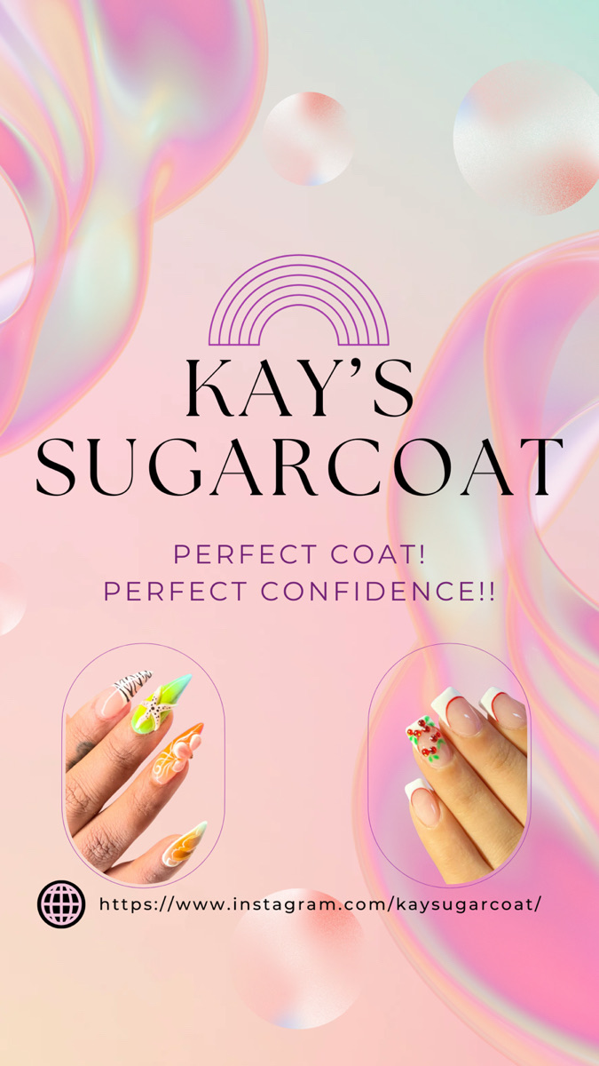 Welcome to Kay's Sugarcoat! Private Luxury Services. I'm here to make your nail care experience truly special and enjoyable. You have an advantage of the convenience of in-home services. I always prioritize cleanliness and safety, and I use high-quality products to make your nails look absolutely beautiful. If you live within 15 miles of my location, I can come to your home for just a small $30 fee, but if you're farther away, there might be additional charges. Please keep in mind that some restrictions may apply. I'm committed to ensuring your happiness, so I'll do my best to accommodate any special requests. Just be aware that my services are require $100. So, don't hesitate! Book your appointment now and let me work my magic, making your nails look fantastic while you have a delightful time!