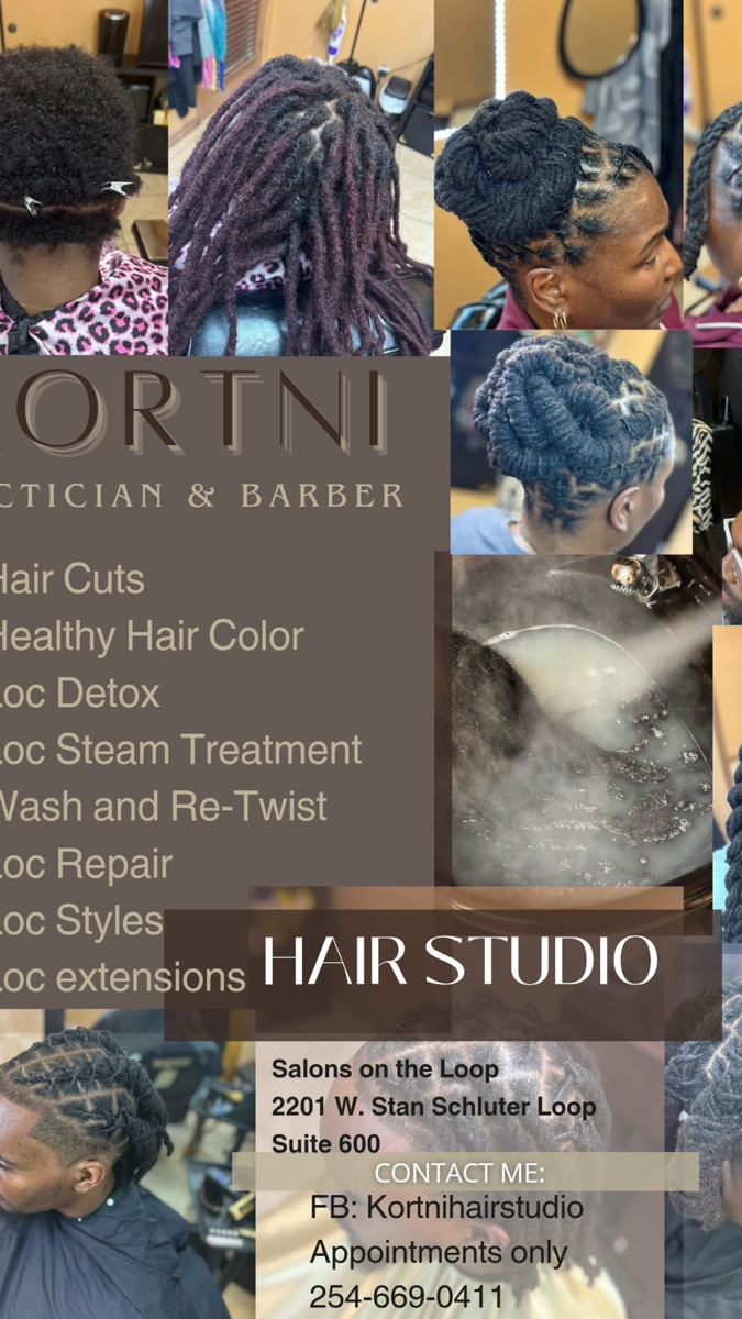 KortniHairStudio is a premier Loc and Barber Shop managed by a skilled Loc Technician/Barber. Dedicated to providing top-notch services, specializing in Loc maintenance and barbering techniques. I strive to create a welcoming and inclusive environment for all clients, ensuring a positive experience with every visit. At KortniHairStudio, I'm committed to staying current with the latest trends and techniques in the industry, guaranteeing that you leave the salon feeling confident and satisfied with your new look. Book an appointment with me today and let me help you achieve your hair goals.