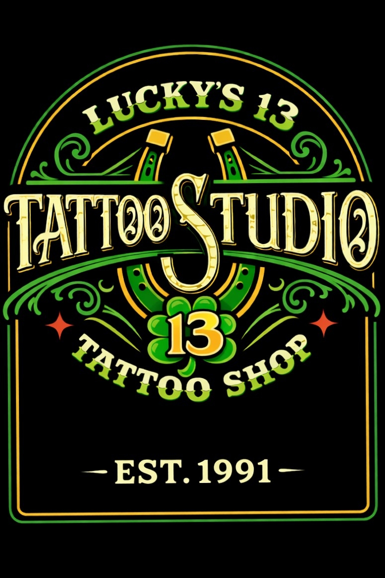 Lucky’s 13 Tattoo — Est. 1991 Decades deep and still going strong. Lucky’s 13 Tattoo delivers every style under the sun—bold, fine, dark, detailed, and everything in between. Our award-winning crew has been featured on TV, in magazines, and on the airwaves, building a reputation that speaks for itself. We tattoo superstars, first-timers, and grandmas alike—no ego, just solid work. We also offer all professional piercings (minus dermals), done clean and right. Good vibes. No pressure. Just great tattoos.