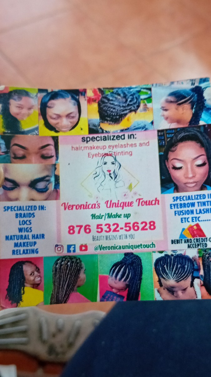 At Veronica's Unique Touch we offer all types of braidstyles, natural hairstyles, relax,hair treatment, lashes, eyebrow tinting and arching, makeup etc etc. Book with us now, WhatsApp or call for more information. (BEAUTY BEGINS WITH YOU 🥰) 8765325628