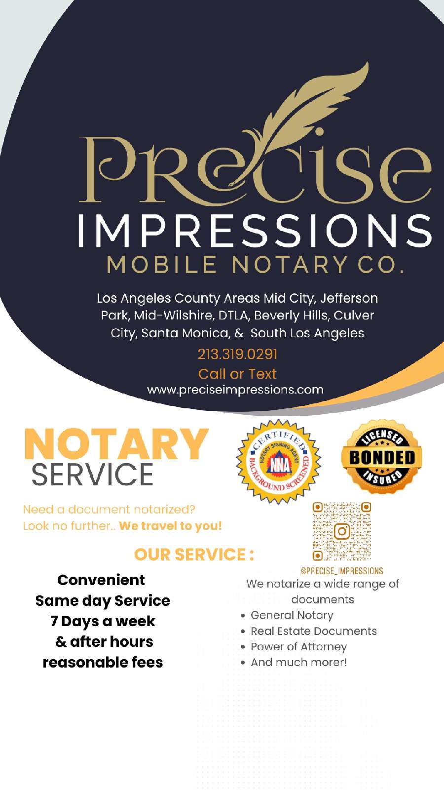 Precise Impressions Mobile Notary Co accepts Buy Now, Pay Later payments
