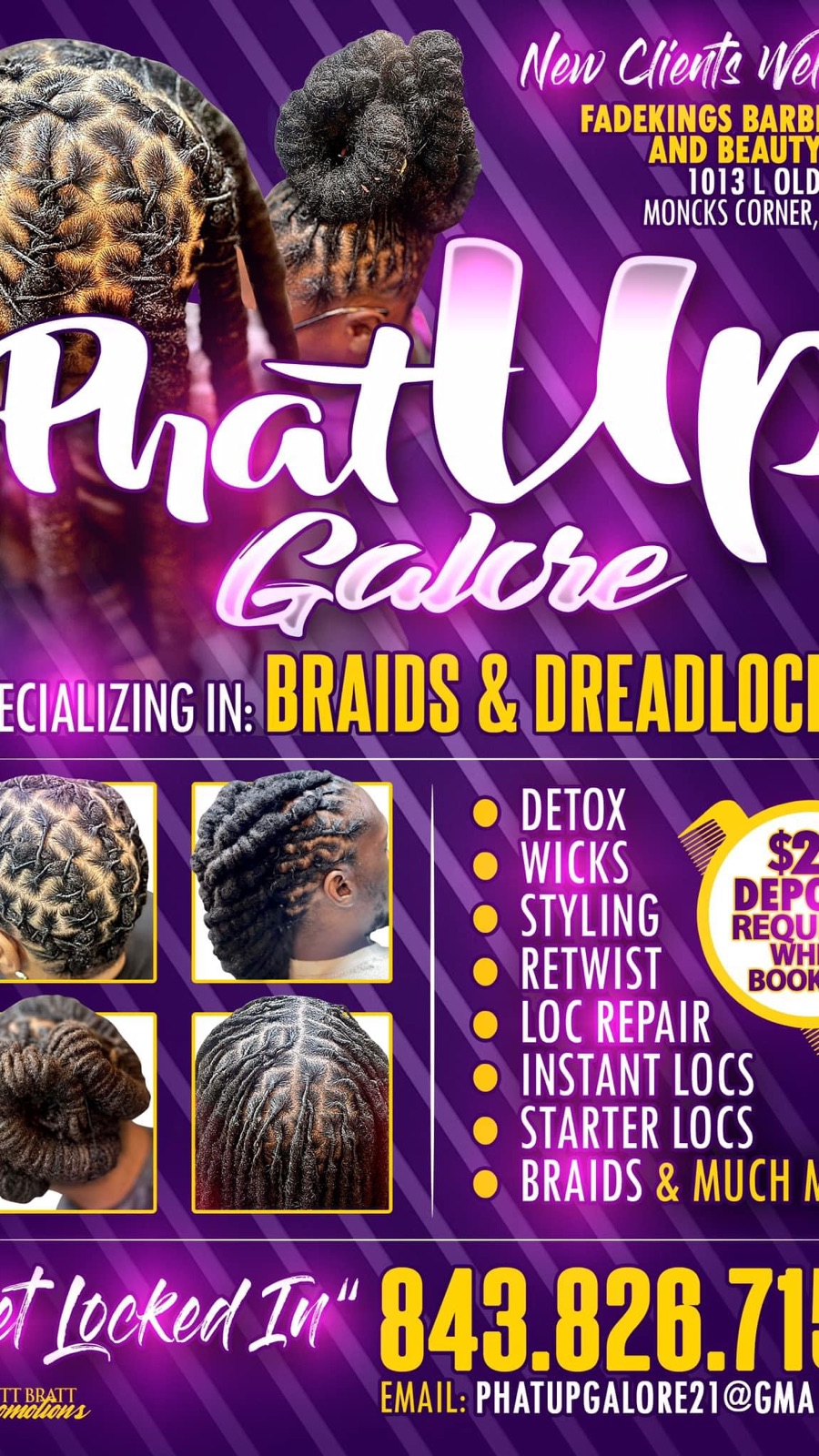 Deposits are non-refundable in case of cancellation or no-show. However, if you reschedule your appointment using the link provided, your deposit will be automatically transferred to your rescheduled booking. Thanks for understanding as always Book Phat Up Galore